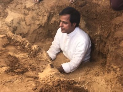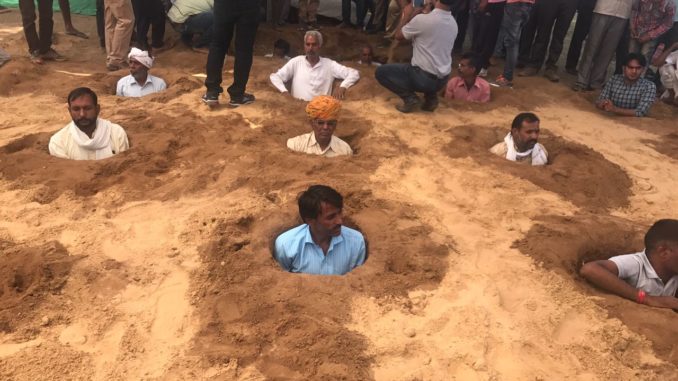 फोकस भारत। नींदड़ बचाओ युवा किसान संघर्ष समिति के आह्वान पर गांधी जयन्ती के अवसर पर सोमवार को महात्मा गाँधी के दिखाये रास्ते पर जेडीए द्वारा किये जा रहे अन्याय के खिलाफ नींदड़ गाँव के किसान और कालोनीवासीयों ने डॉ नगेन्द्र सिंह शेखावत के नेतृत्व में जमीन समाधि सत्याग्रह शुरू किया। शेखावत ने कहा कि यह जमीन समाधि सत्याग्रह नींदड़ की जमीन अवाप्ति निरस्त होने तक जारी रहेगा। इस अवसर राजावास व्यापार मंडल के मनीष गुलिया, प्रेस सचिव हरिशंकर शर्मा, चंदा देवी शर्मा, संजय परसवाल, नरेंद्र बोहरा, छोटा कुमावत, रूड़ी देवी, महेंद्र चौधरी, बोदूराम बोहरा, मंगली शर्मा, पूरण सिंह, मालचंद बोहरा, अमरसिंह, सीताराम बोहरा सहित सैकड़ों किसानों व ग्रामीण मौजूद थे।