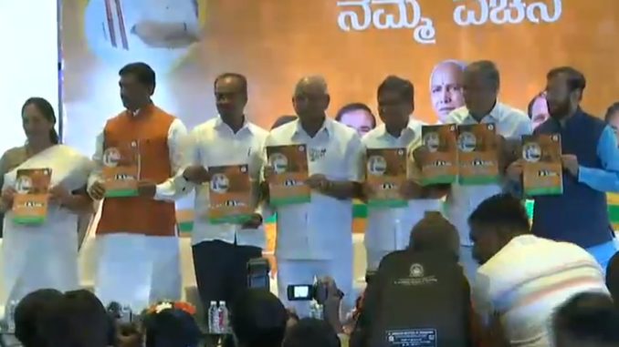 फोकस भारत। भाजपा ने कर्नाटक विधानसभा चुनाव के लिए अपना घोषणा पत्र जारी कर दिया है। पार्टी ने इसमें किसान और महिलाओं को खास तवज्जो देते हुए उनके लिए कई अहम घोषणाएं की हैं। पार्टी ने महिलाओं को मंगलसूत्र और स्मार्टफोन देने का वादा किया है। इसके साथ ही किसानों को सिंचाई परियोजनाओं के लिए डेढ़ लाख करोड़ रुपये आवंटित करने और एक लाख रुपये तक के कृषि ऋण को माफ करने का वादा किया है। पार्टी ने गरीब लोगों को आकर्षित करने के लिए बीपीएल श्रेणी की लड़कियों की शादी के समय 25,000 रुपये और तीन ग्राम सोना देने का वादा किया गया है। साथ ही ‘अन्नपूर्णा कैंटीन’ शुरू करने की बात भी कही गयी है। युवाओं को आकर्षित करने के मकसद से पार्टी की तरफ से लैपटॉप बांटने का भी वादा किया गया है। पार्टी ने गायों की सुरक्षा से जुड़े ‘गो सेवा आयोग’ बनाने की बात भी की है। दरअसल राज्य की 224 सदस्यीय विधानसभा के लिए 12 मई को चुनाव होंगे। मतों की गिनती 15 को होगी।